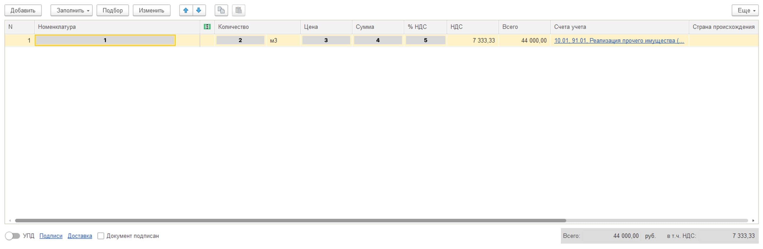 7. Всего. Ожидаем, что 1С посчитает автоматически