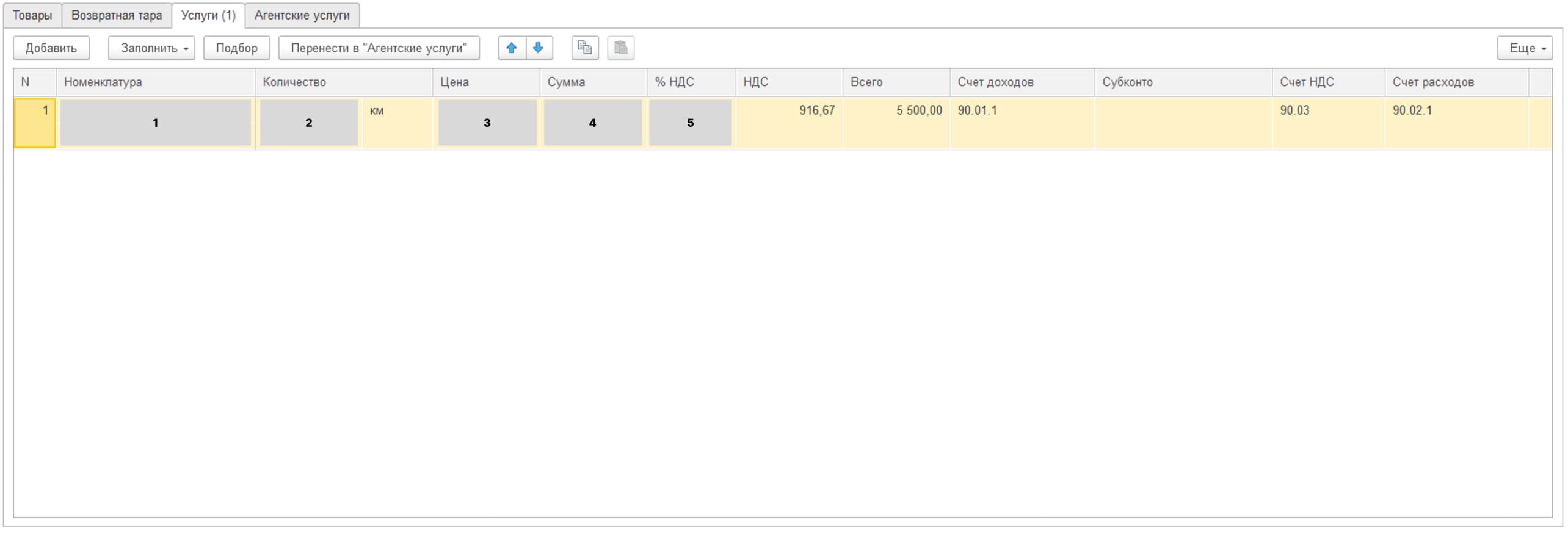 8. Счета. Ожидаем, что 1С подставит автоматически, исходя из продукции