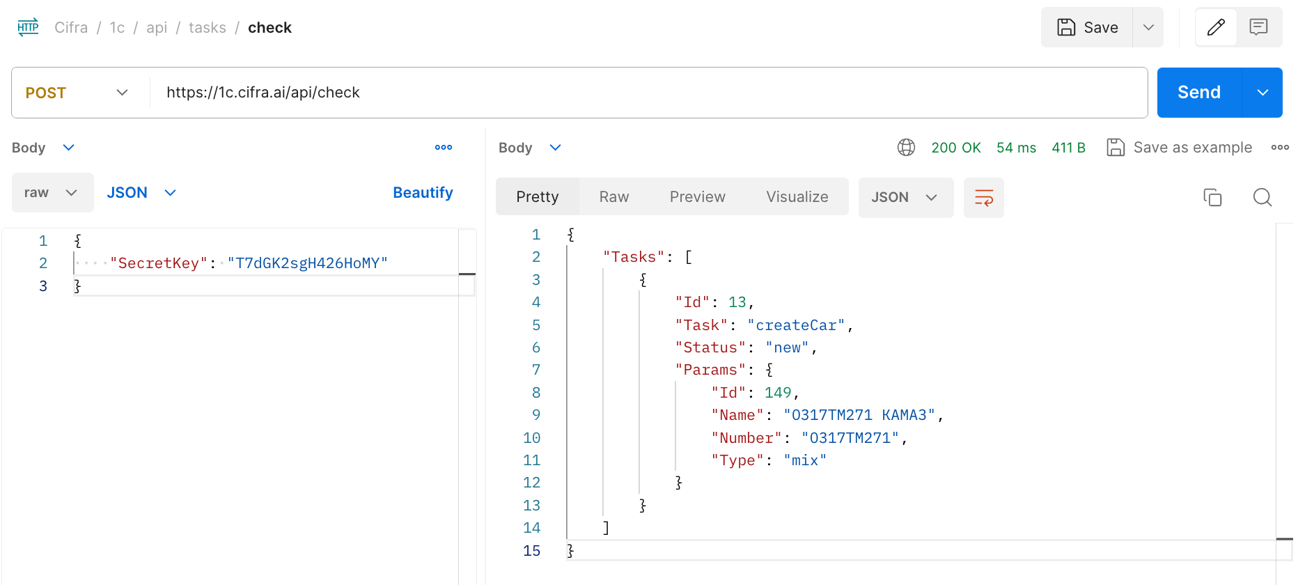 Пример получения заданий post-запросом на метод check
